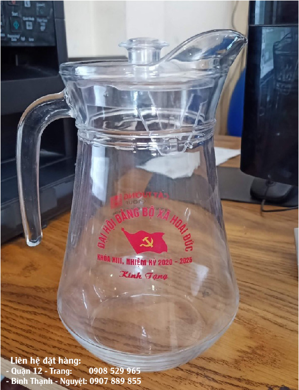 In logo bình thủy tinh. Dòng sản phẩm này được nhiều khách hàng lựa chọn. In logo bình thủy tinh phù hợp với đối tượng là những người trẻ nên thường được các quán cà phê, trà sữa, các quán đồ ăn vặt hay Khách hàng là công ty thường lựa chọn để in logo, thương hiệu lên sản phẩm để Quảng bá thương hiệu hoặc tri ân khách hàng. Sản phẩm này được biết đến nhiều thương hiệu của Indonesia, Ocean Thái Lan hay Luminarc.