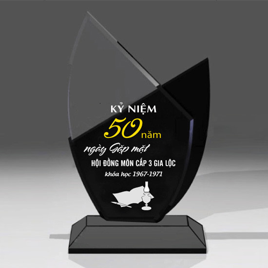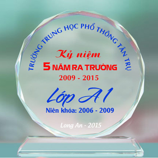 Thiết kế kỷ niệm chương lễ tốt nghiệp theo mẫu riêng, làm từ chất liệu thủy tinh, pha lê, gỗ đồng. Thông thường chỉ cần làm bằng thủy tinh với giá thành rẻ nhất.