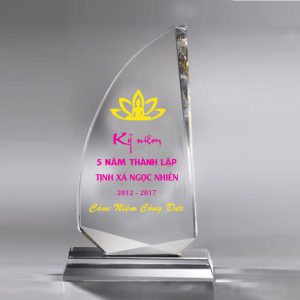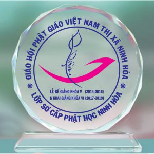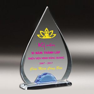 Chúng tôi có nhận thiết kế kỷ niệm chương theo mẫu riêng, làm từ chất liệu thủy tinh, pha lê, gỗ đồng – đáp ứng hầu hết các sự kiện của hoạt động Phật Giáo.