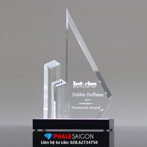 Sản phẩm được làm từ pha lê trong, có thể kết hợp thêm nhiều màu khác. Thiết kế mẫu và kích thước theo yêu cầu khách hàng. Biểu trưng pha lê lưu niệm đẹp dùng tặng trong nhiều sự kiện khác nhau.