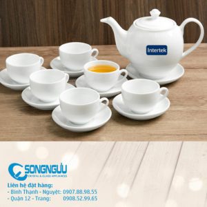 Bộ bình trà trắng 6 tách WorldTrans, in logo gốm sứ, bộ quà tặng. In gốm sứ thủy tinh, xưởng in giá rẻ, nơi đặt quà tặng gốm sứ thủy tinh. Cung cấp vật phẩm quà tặng quảng cáo khuyến mãi.