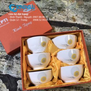 Bộ quà tặng 5 chén sứ hoa, in logo gốm sứ, bộ quà tặng. In gốm sứ thủy tinh, xưởng in giá rẻ, nơi đặt quà tặng gốm sứ thủy tinh. Cung cấp vật phẩm quà tặng quảng cáo khuyến mãi.