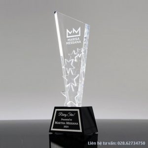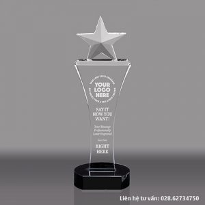 Cúp pha lê ngôi sao được làm từ pha lê trắng trong. Phối thêm các màu khác theo yêu cầu, nội dung khắc theo yêu cầu riêng từng sự kiện. Cúp pha lê ngôi sao được làm từ pha lê trong. Phối thêm các màu khác theo yêu cầu, nội dung khắc theo yêu cầu riêng từng sự kiện. Ngoài mẫu tiêu chuẩn, khách hàng có thể đặt theo mẫu, kích thước riêng.