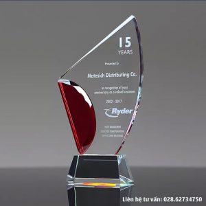 Cúp pha lê vinh danh 5 năm thâm niên được làm từ pha lê trắng trong. Phối thêm các màu khác theo yêu cầu, nội dung khắc theo yêu cầu riêng từng sự kiện. Cúp pha lê vinh danh 5 năm thâm niên được làm từ pha lê trong. Phối thêm các màu khác theo yêu cầu, nội dung khắc theo yêu cầu riêng từng sự kiện. Ngoài mẫu tiêu chuẩn, khách hàng có thể đặt theo mẫu, kích thước riêng.