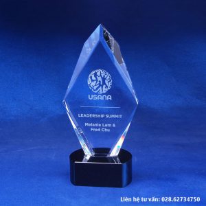 Cúp pha lê vinh danh lãnh đạo cao cấp được làm từ pha lê trắng trong. Phối thêm các màu khác theo yêu cầu, nội dung khắc theo yêu cầu riêng từng sự kiện. Cúp pha lê vinh danh lãnh đạo cao cấp được làm từ pha lê trong. Phối thêm các màu khác theo yêu cầu, nội dung khắc theo yêu cầu riêng từng sự kiện. Ngoài mẫu tiêu chuẩn, khách hàng có thể đặt theo mẫu, kích thước riêng.