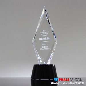 Cúp pha lê vinh danh nhân viên được làm từ pha lê trắng trong. Phối thêm các màu khác theo yêu cầu, nội dung khắc theo yêu cầu riêng từng sự kiện. Cúp pha lê vinh danh nhân viên được làm từ pha lê trong. Phối thêm các màu khác theo yêu cầu, nội dung khắc theo yêu cầu riêng từng sự kiện. Ngoài mẫu tiêu chuẩn, khách hàng có thể đặt theo mẫu, kích thước riêng.