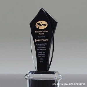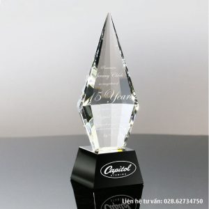 Cúp pha lê vinh danh thâm niên được làm từ pha lê trắng trong. Phối thêm các màu khác theo yêu cầu, nội dung khắc theo yêu cầu riêng từng sự kiện. Cúp pha lê vinh danh thâm niên được làm từ pha lê trong. Phối thêm các màu khác theo yêu cầu, nội dung khắc theo yêu cầu riêng từng sự kiện. Ngoài mẫu tiêu chuẩn, khách hàng có thể đặt theo mẫu, kích thước riêng.