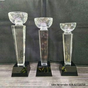Cúp tô pha lê trao giải được làm từ pha lê xanh dương. Phối thêm các màu khác theo yêu cầu, nội dung khắc theo yêu cầu riêng từng sự kiện. Cúp tô pha lê trao giải được làm từ pha lê trong. Phối thêm các màu khác theo yêu cầu, nội dung khắc theo yêu cầu riêng từng sự kiện. Ngoài mẫu tiêu chuẩn, khách hàng có thể đặt theo mẫu, kích thước riêng.