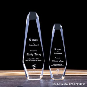 Cúp tri ân thâm niên 15 năm được làm từ pha lê trắng trong. Phối thêm các màu khác theo yêu cầu, nội dung khắc theo yêu cầu riêng từng sự kiện. Cúp tri ân thâm niên 15 năm được làm từ pha lê trong. Phối thêm các màu khác theo yêu cầu, nội dung khắc theo yêu cầu riêng từng sự kiện. Ngoài mẫu tiêu chuẩn, khách hàng có thể đặt theo mẫu, kích thước riêng.