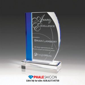Sản phẩm được làm từ pha lê trong, có thể kết hợp thêm nhiều màu khác. Thiết kế mẫu và kích thước theo yêu cầu khách hàng. Kỷ niệm chương khen thưởng nhân viên xuất sắc dùng tặng trong nhiều sự kiện khác nhau.