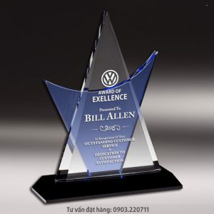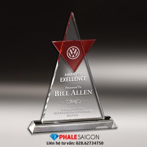 Sản phẩm được làm từ pha lê trong, có thể kết hợp thêm nhiều màu khác. Thiết kế mẫu và kích thước theo yêu cầu khách hàng. Kỷ niệm chương nhân viên xuất sắc dùng tặng trong nhiều sự kiện khác nhau.