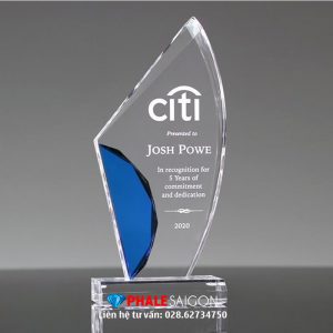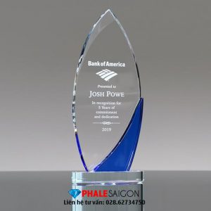 Sản phẩm được làm từ pha lê trong, có thể kết hợp thêm nhiều màu khác. Thiết kế mẫu và kích thước theo yêu cầu khách hàng. Kỷ niệm chương pha lê 5 năm tri ân đạo dùng tặng trong nhiều sự kiện khác nhau.