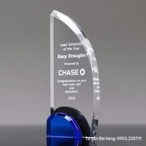 Sản phẩm được làm từ pha lê trong, có thể kết hợp thêm nhiều màu khác. Thiết kế mẫu và kích thước theo yêu cầu khách hàng. Kỷ niệm chương pha lê hình cánh buồm dùng tặng trong nhiều sự kiện khác nhau.
