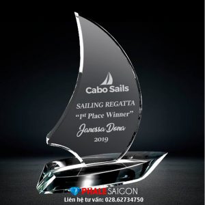 Kỷ niệm chương pha lê hình cánh buồm. Xưởng sản xuất quà tặng pha lê, thủy tinh, biểu trưng tôn vinh, quà tặng lưu niệm, vinh danh, tri ân, khen thưởng lãnh đạo, khách hàng, nhân viên.