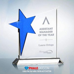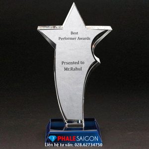 Sản phẩm được làm từ pha lê trong, có thể kết hợp thêm nhiều màu khác. Thiết kế mẫu và kích thước theo yêu cầu khách hàng. Kỷ niệm chương pha lê ngôi sao vinh danh đạo dùng tặng trong nhiều sự kiện khác nhau.