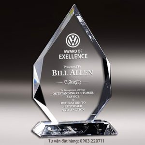 Sản phẩm được làm từ pha lê trong, có thể kết hợp thêm nhiều màu khác. Thiết kế mẫu và kích thước theo yêu cầu khách hàng. Kỷ niệm chương khen thưởng nhân viên xuất sắc dùng tặng trong nhiều sự kiện khác nhau.
