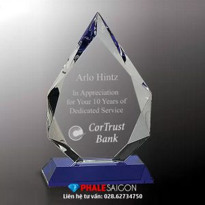 Sản phẩm được làm từ pha lê trong, có thể kết hợp thêm nhiều màu khác. Thiết kế mẫu và kích thước theo yêu cầu khách hàng. Kỷ niệm chương tặng nhân viên cống hiến đạo dùng tặng trong nhiều sự kiện khác nhau.