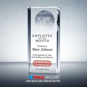 Quà tặng pha lê vinh danh nhân viên được làm từ pha lê trong phù hợp tặng khách hàng, tri ân, lưu niệm. Nội dung được thiết kế và khắc theo yêu cầu riêng từng sự kiện. Sản phẩm phù hợp làm quà tặng doanh nghiệp. Ngoài Quà tặng pha lê vinh danh nhân viên theo mẫu tiêu chuẩn, khách hàng có thể đặt theo mẫu, kích thước riêng.
